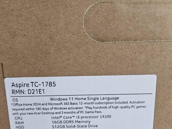 ACER DESKTOP ASPIRE TC-1785 i3-14100 Ram 16 SSD 512 มาพร้อมวินโดว์และออฟฟิตแท้ ของใหม่ ยังไม่แกะ ประกันศูนย์ออนไซค์ถึง 2028
