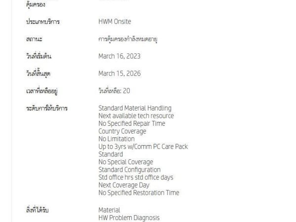 ประกันศูนย์ Onsite : 15 Mach 2026