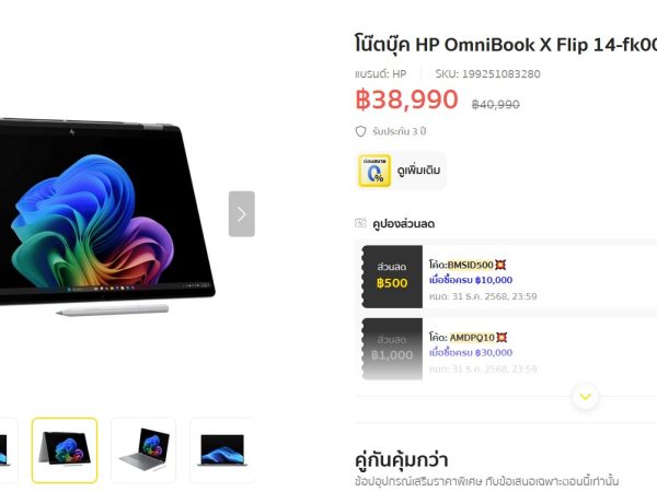 HP OmniBook X Flip 14-fk0054AU Silver ของใหม่ ยังไม่แกะ AMD Ryzen AI 5 340 Ram 16 SSD 1TB จอ 14″ 2K ทัชสกรีน พร้อมวินโดว์และออฟฟิตแท้ มีประกันศูนย์ออนไซค์ถึง 2028