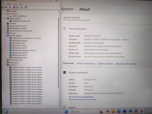 HP ProDesk 600 G6 Desktop Mini i7-10700T SSD256GB RAM16GB Win 11 Pro มือสอง สภาพสวย