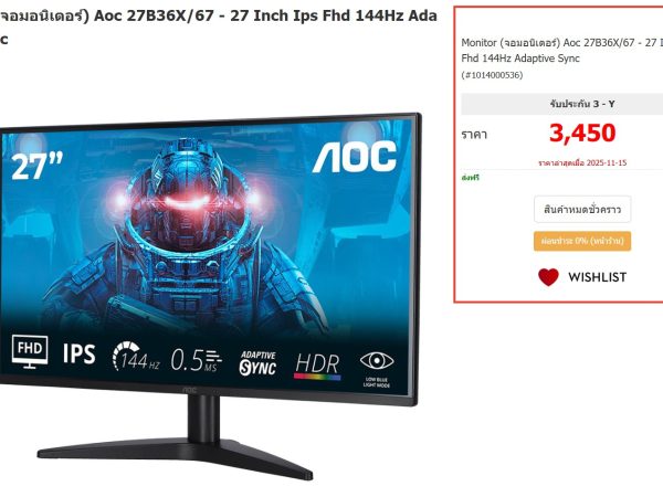 Monitor (จอมอนิเตอร์) Aoc 27B36X/67 – 27 Inch Ips Fhd 144Hz Adaptive Sync ของใหม่ ไม่แกะกล่อง ประกัน 3 ปีเต็ม