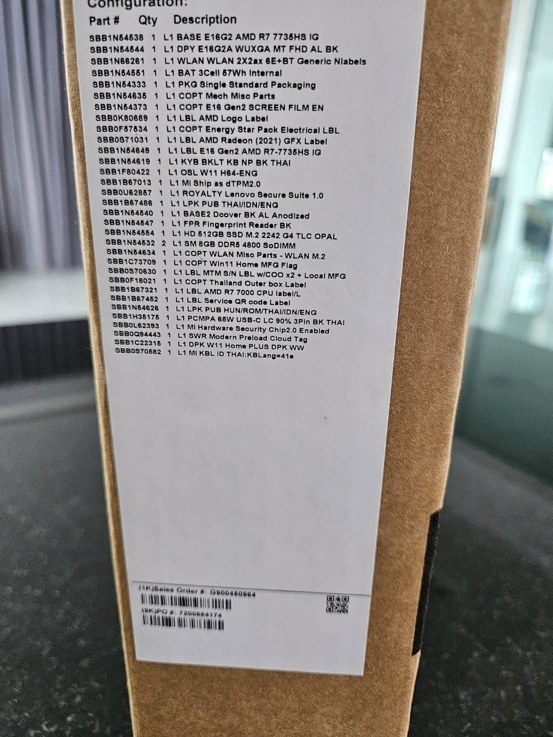 Notebook “Lenovo” ThinkPad E16 G2 R7 7735HS/16GB/512GB SSD/16.0″/Win11Home สินค้าใหม่ ยังไม่แกะ ครบกล่อง มีประกันศูนย์ 6 เดือน