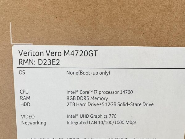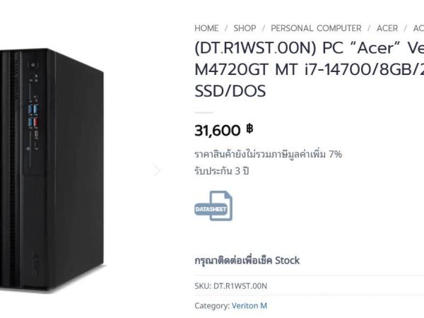 PC “Acer” Veriton Vero M4720GT MT i7-14700/8GB/2TB + 512GB SSD/DOS ของใหม่ ยังไม่แกะ ประกันศูนย์ออนไซค์ถึง 09/2028